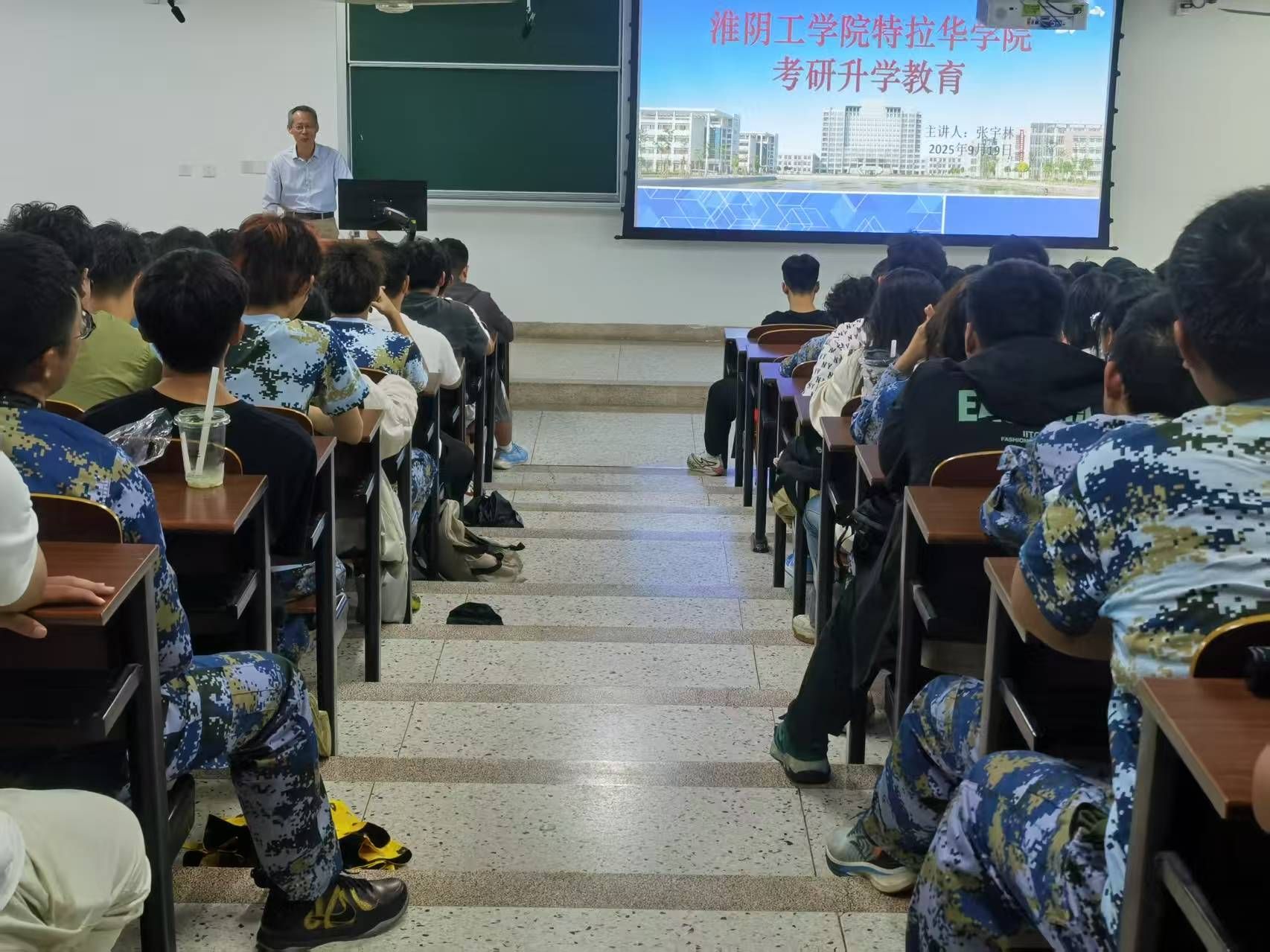 近日,特拉华学院在逸夫楼103考研教室组织开展考研升学专题讲座。特拉华学院党委书记张宇林主讲,学院2025级全体新生参加了本次活动。