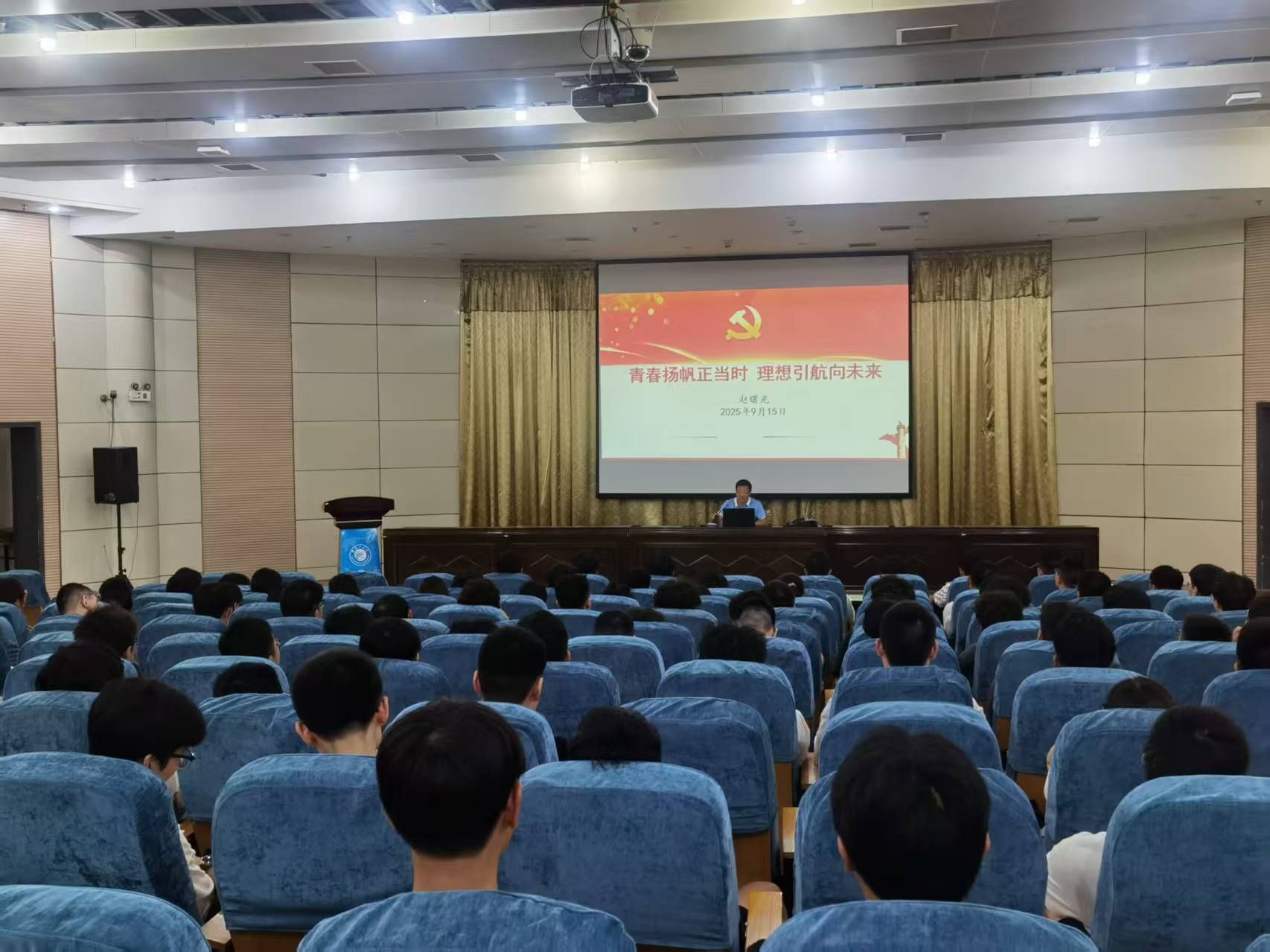 赵曙光从“理想之光,照亮青春起航”“初心如炬,认识我们的党”“追求进步,迈向组织大门”“扬帆起航,书写青春华章”四方面展开。引导同学深入思考:为什么大学需要坚定的理想信念?如何树立坚定的理想信念等。报告中为同学明确了入党的基本条件和要求,涵盖入党动机教育、流程和材料撰写等方面指导,强调了党员发展的严肃性与规范性。帮助新生直观理解党的宗旨、党员的责任与担当,进一步诠释为人民服务的入党动机。鼓励新生在学好专业知识的同时主动加强思想修养,以实际行动向党组织靠扰,努力成长为有理想能担当的新时代青年。